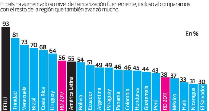According to Global Findex, the database on bank accounts around the world, 55% of Dominicans older than 15 years old already has a bank account. This is above the Latin American average of 54% and that in 13 Latin American countries, including all in Central America with the exception of Costa Rica.