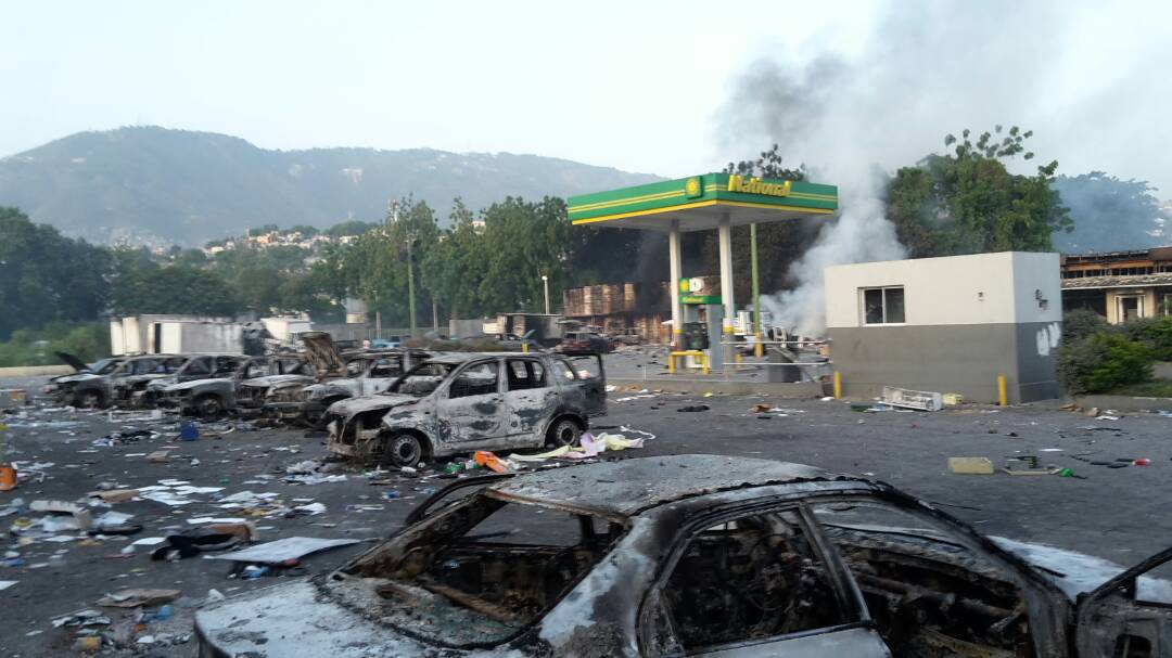 Several commercial buildings, including supermarkets were attacked, particularly on the axis of Delmas, on the outskirts of the capital. Beginnings of looting were observed, while the presence of police on the streets was minimal. The Delimart Super Market in Delmas 30, has faced stone throwing and individuals set fire to the Market court requiring the intervention of firefighters.