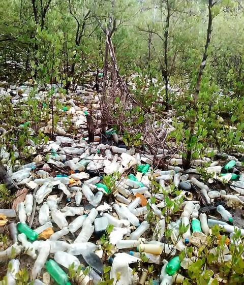 In a mangrove area of 50 tasks that have been traversed, were extracted some 185 covers each with capacity of 55 gallons and 47 bags of inorganic waste, such as plastic and glass bottles, cups and plates of polyurethane, tin, in addition to plastic cases.