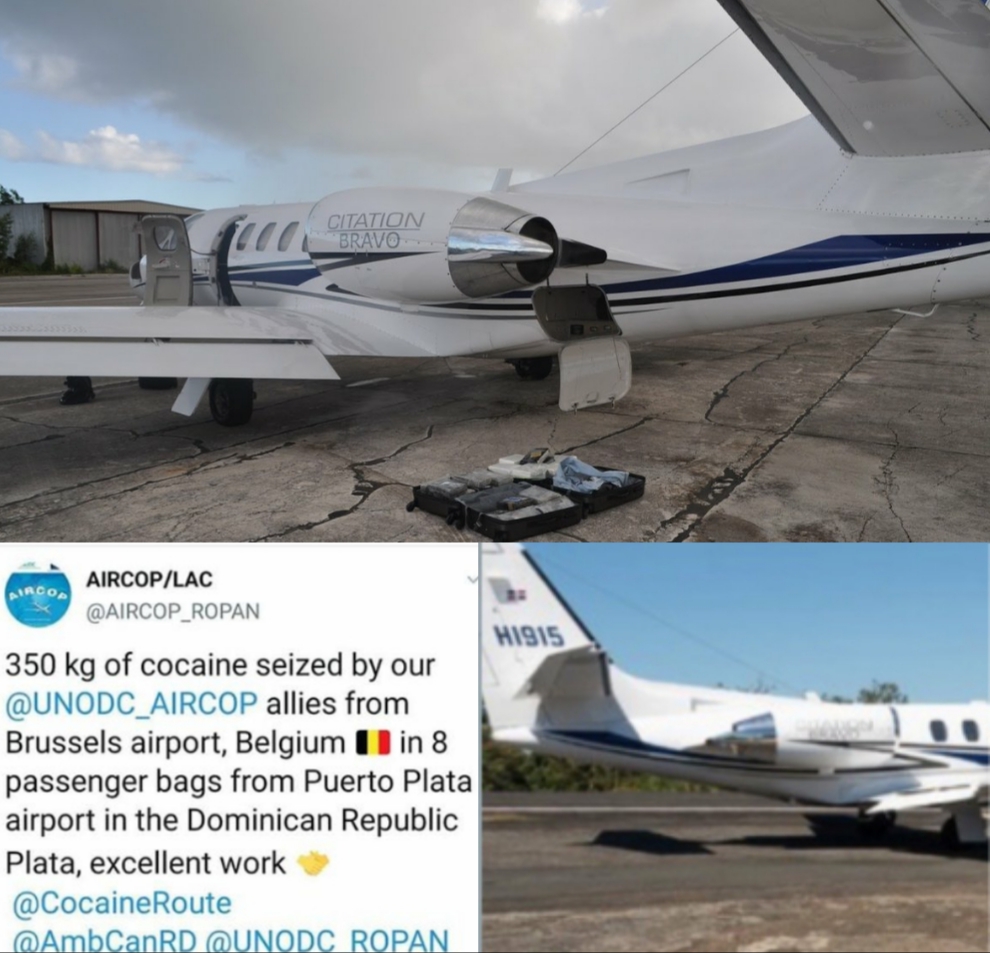 The United Nations Office on Drugs and Crime (UNODC), through the Twitter account @AIRCOP_ROPAN, confirmed in the aforementioned plane that 350 kilograms of cocaine arrived from the Puerto Plata airport in the Dominican Republic.