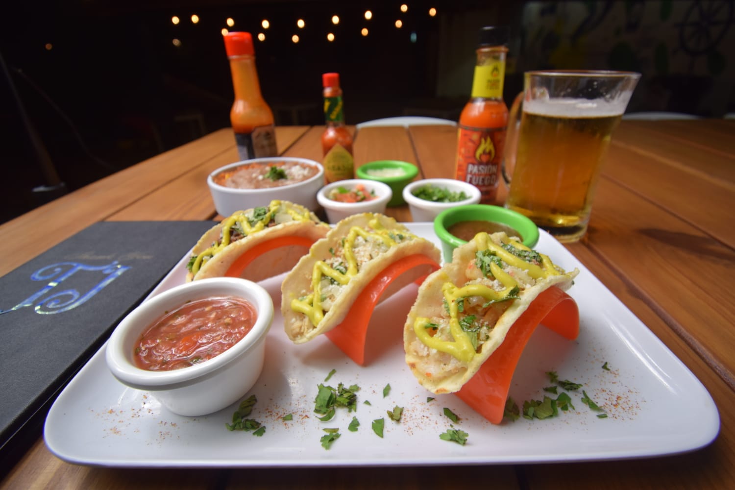 Visit us at the Tap Room Food Park (North Coast Brewers/Cerveceria). We have a cozy atmosphere, comfortable seating, and delicious tacos. And you can enjoy a drink of draft beer from our Tap Room as well.