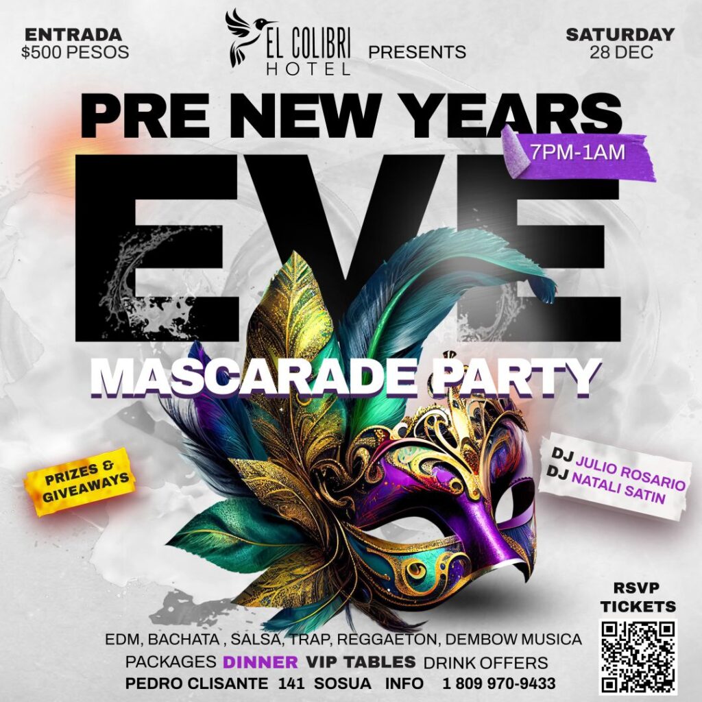 #MasqueradeParty #PreNewYearsEve #SosuaEvents #ElColibriResort #SosuaBestEvent #WhatToDoInPuertoPlata #PartyOnSaturday
